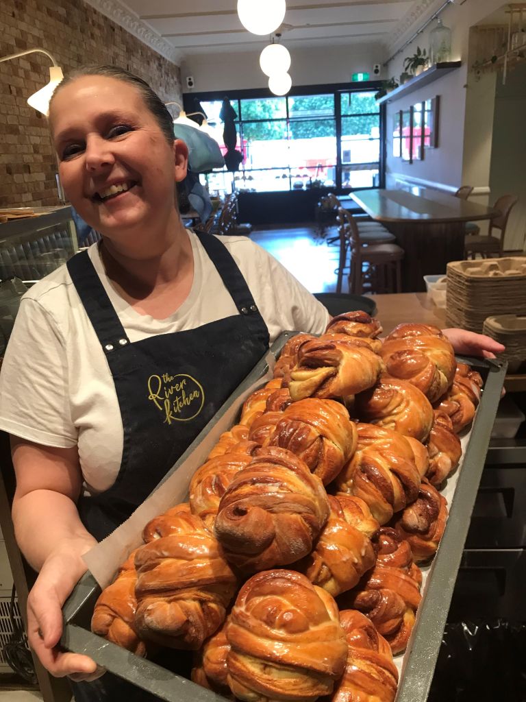 About: I’m the owner-chef of The River Kitchen on Victoria St South. I worked for previous owners Brent and Lisa Quarrie, and bought the cafe from them nearly six years ago. I moved to neighbouring (bigger) premises in October 2019, just six months before the first Covid lockdown. I’ve worked in hospo for 34 years and my training has been all about on-the-job opportunities rather than formal qualifications. My first job was on Friday afternoons after school, when I cleaned out the fridge and cabinets at a deli-bakery at the Beerescourt shops. The owner did lovely homemade food, including a very good walnut streusel. When I was about 16, I got a front-of-house job at Gerard’s Restaurant, on Ulster St. On the night I started, I asked my first-ever table how they wanted their pork schnitzel cooked. By the looks on their faces I knew I’d made a mistake! I worked for a number of years under maitre d’ David Charteris, and learned so much from him. Later I had various roles at Wintec’s catering school, and was there for 16 years. I met Mandy Scott at Wintec, co-owner of Scotts Epicurean, and I left Wintec to manage her second eatery, Scotts on Ward. I made all the cakes at Scotts on Ward, and did a lot of other cooking. I was living in Victoria St at that time, opposite The River Kitchen, where I had breakfast every Saturday and Sunday. One day I said to Lisa (Quarrie), “I can make good cakes; can I have a job?”