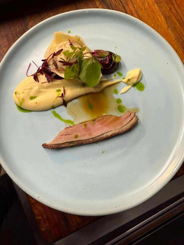 Matt Gemmell, third: tender dry-aged duck breast, beautifully paired with confit duck tortellini, celeriac puree and a pop of fermented beetroot: possibly my stand-out but there were other close contenders.
