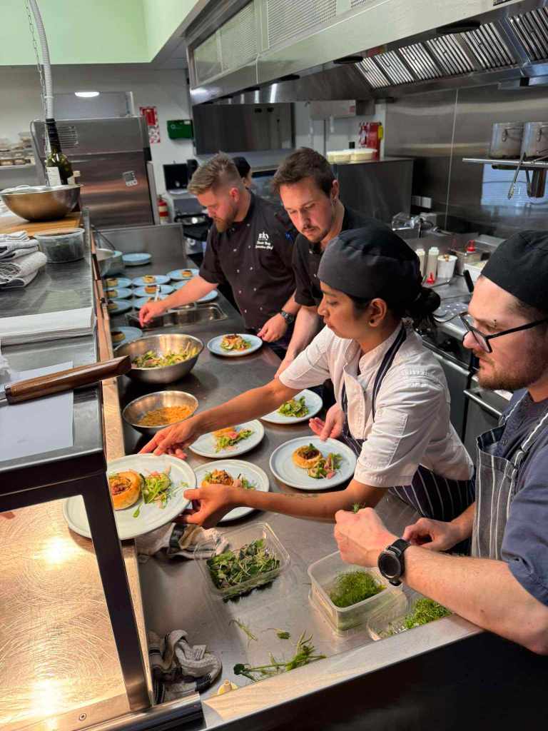 But there he was, socialising out front last Sunday night while others were running the engine room, a kitchen takeover for the Chef du Jour event, a degustation dinner to support and celebrate some of Hamilton’s rising culinary stars.